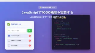 今回は、JavaScriptを使ってTODO機能(タスクの追加・削除)を一から実装する方法を解説します。TODO機能は、プログラミング学習でよく作られるアプリケーションの一つです。フォームからデータを受け取り、LocalStorageに保存...