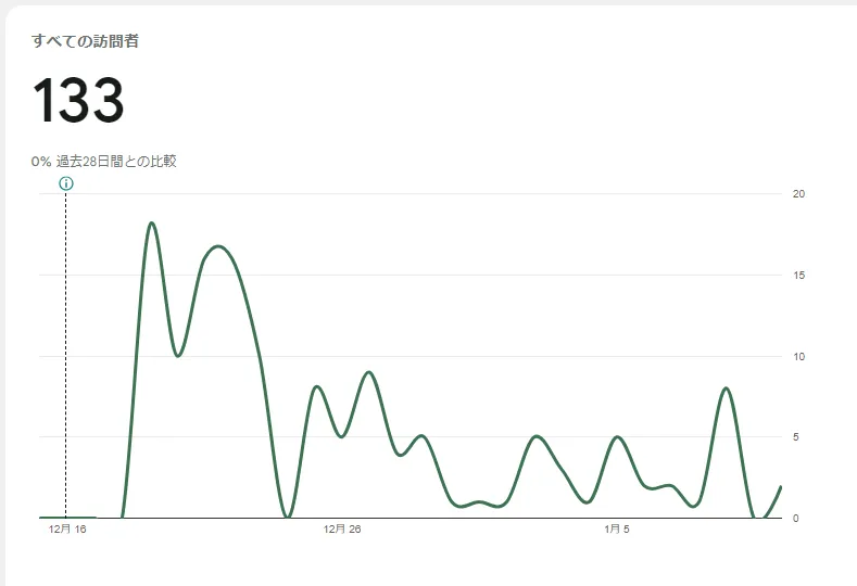 ブログ開設から1ヶ月間の合計PV数は133PVでした。1日あたりに換算すると、およそ4〜5PVとなります。