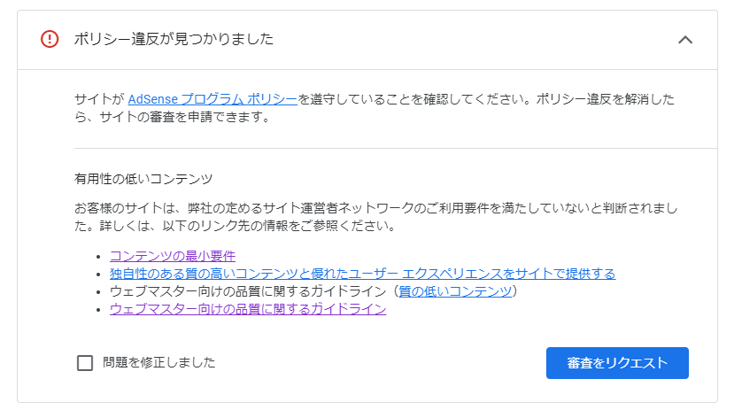 Google AdSenseには2回申請しましたが、どちらも不合格という結果でした。